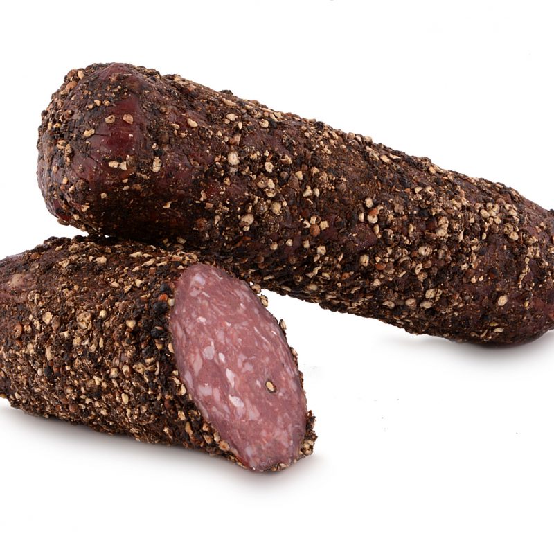 SALAME CON CINGHIALE AL PEPE, intero sotto vuoto Gr.400 ca